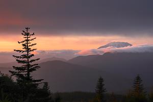 Mount Saint Helens through the clouds. Washington.