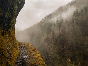 Foggy morning on the trail, Oregon